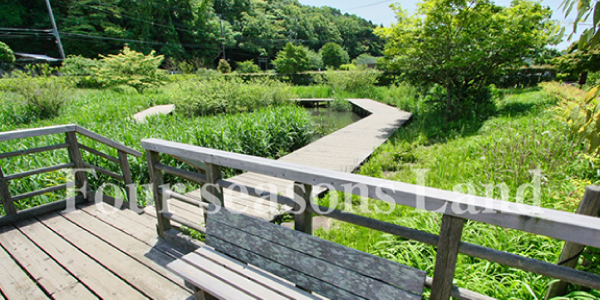 自然と触れ合うことのできる湿性植物園や、藤棚・つつじの丘・桜並木・親水広場などがあります。
